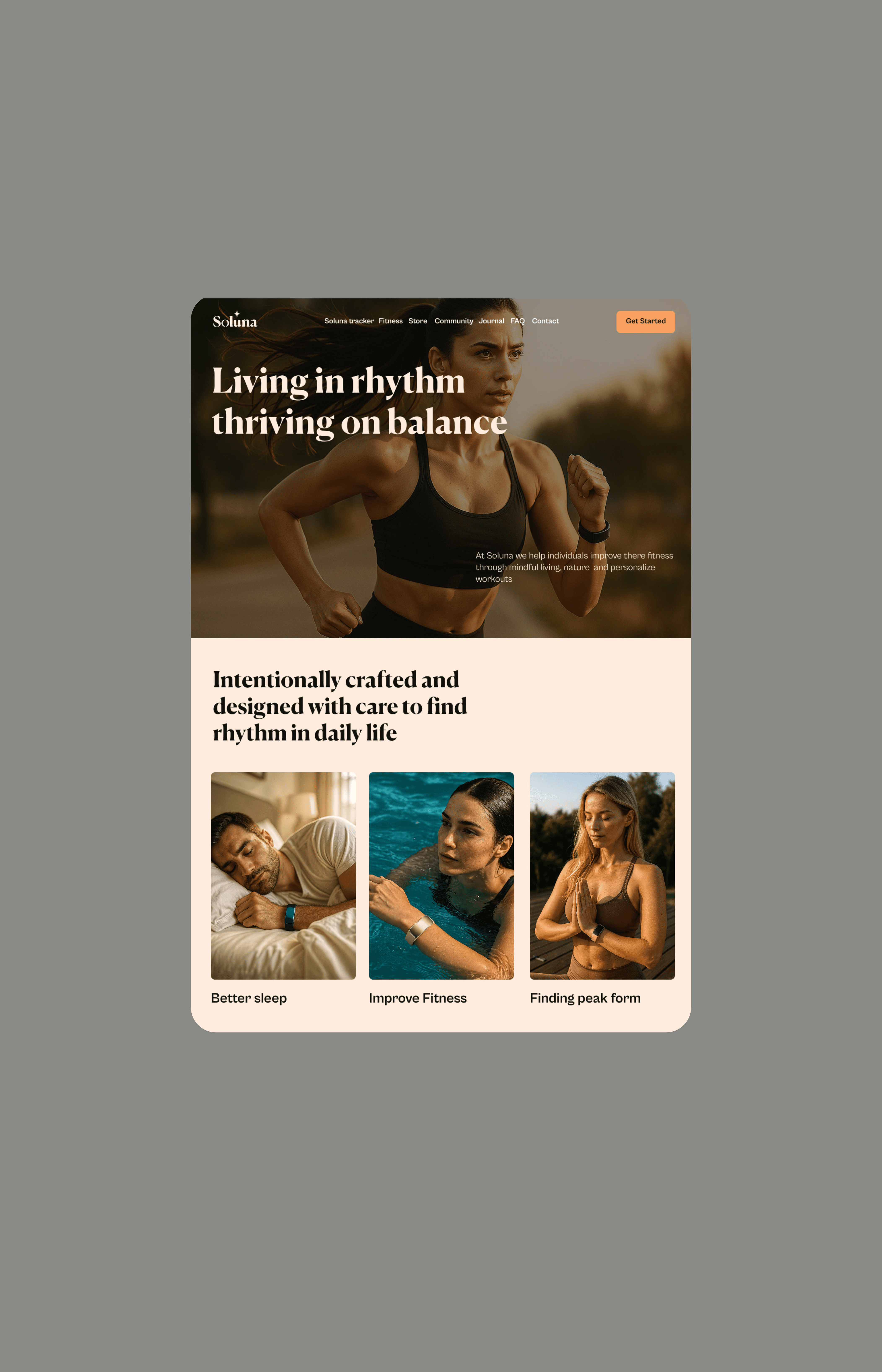Soluna is a startup that helps individuals improve their fitness through mindful living, nature and personalize workouts..